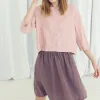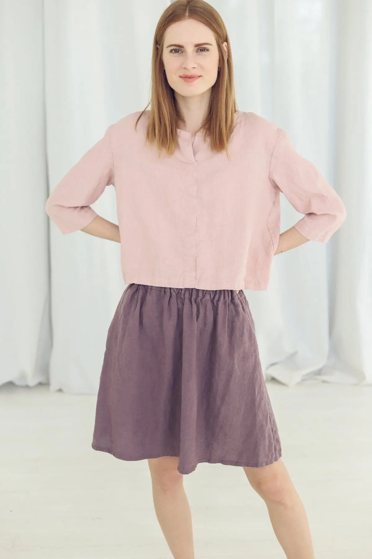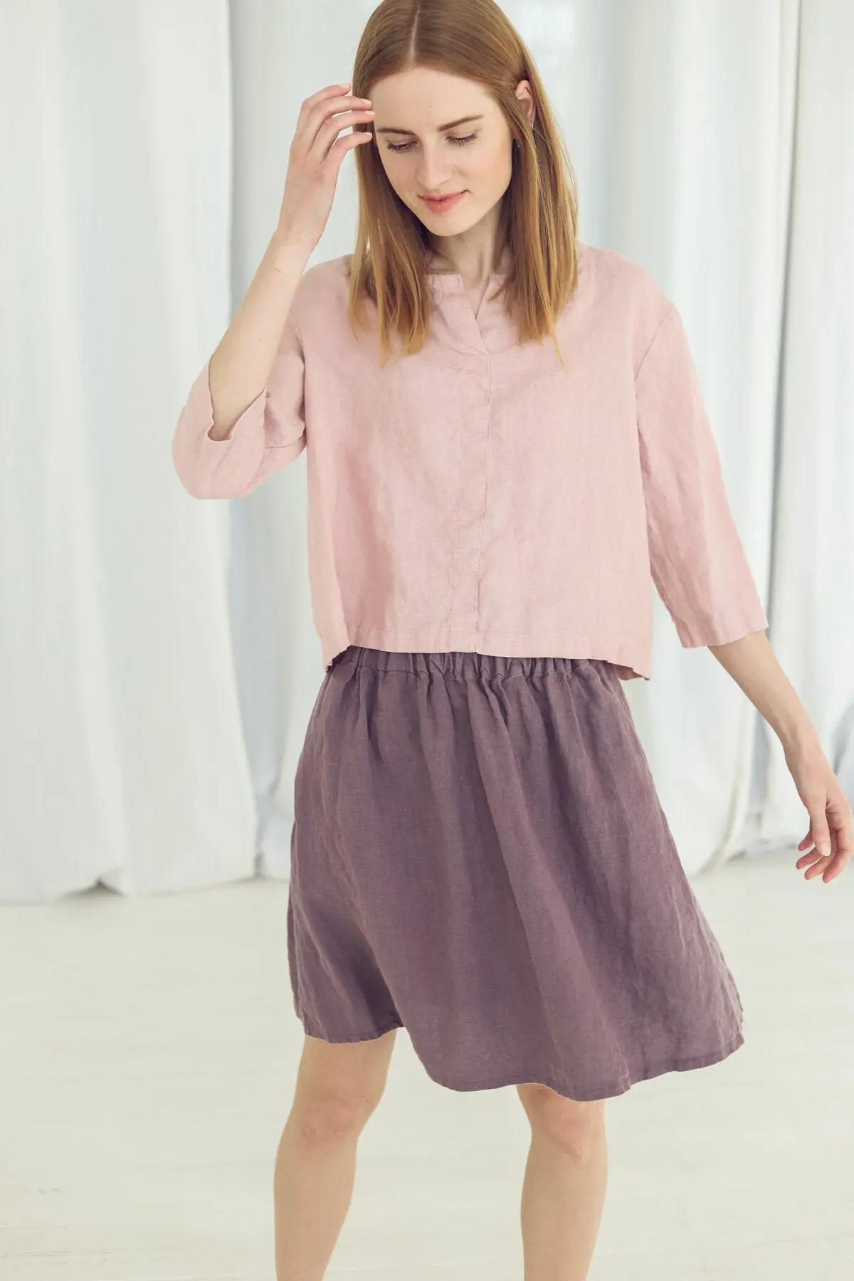 Linen Crop Top: 3/4 Sleeve Summer Blouse
