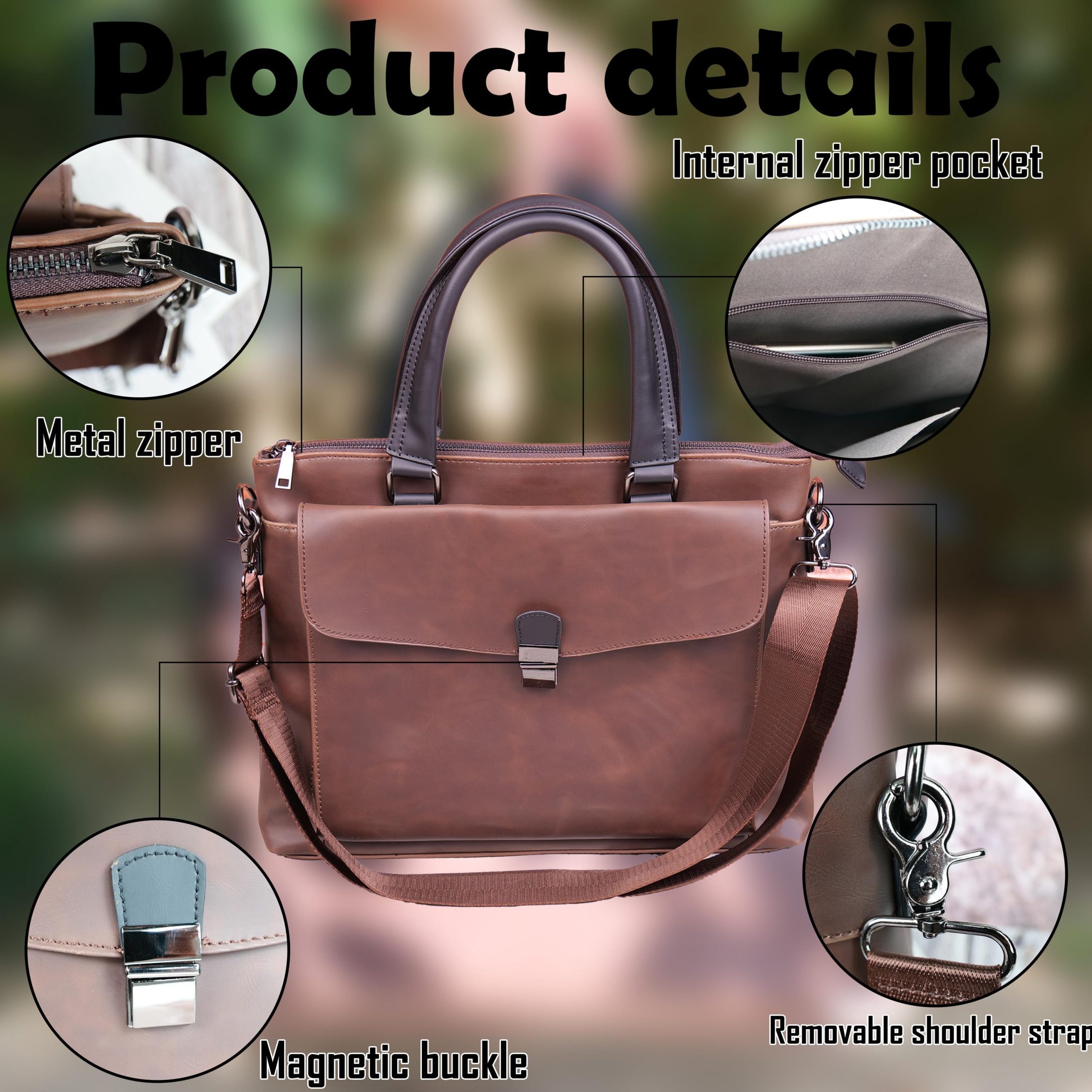 Versatile Carrying Options: Equipped with dual handles for a briefcase-style carry and an adjustable long strap to wear comfortably as a shoulder or crossbody bag.