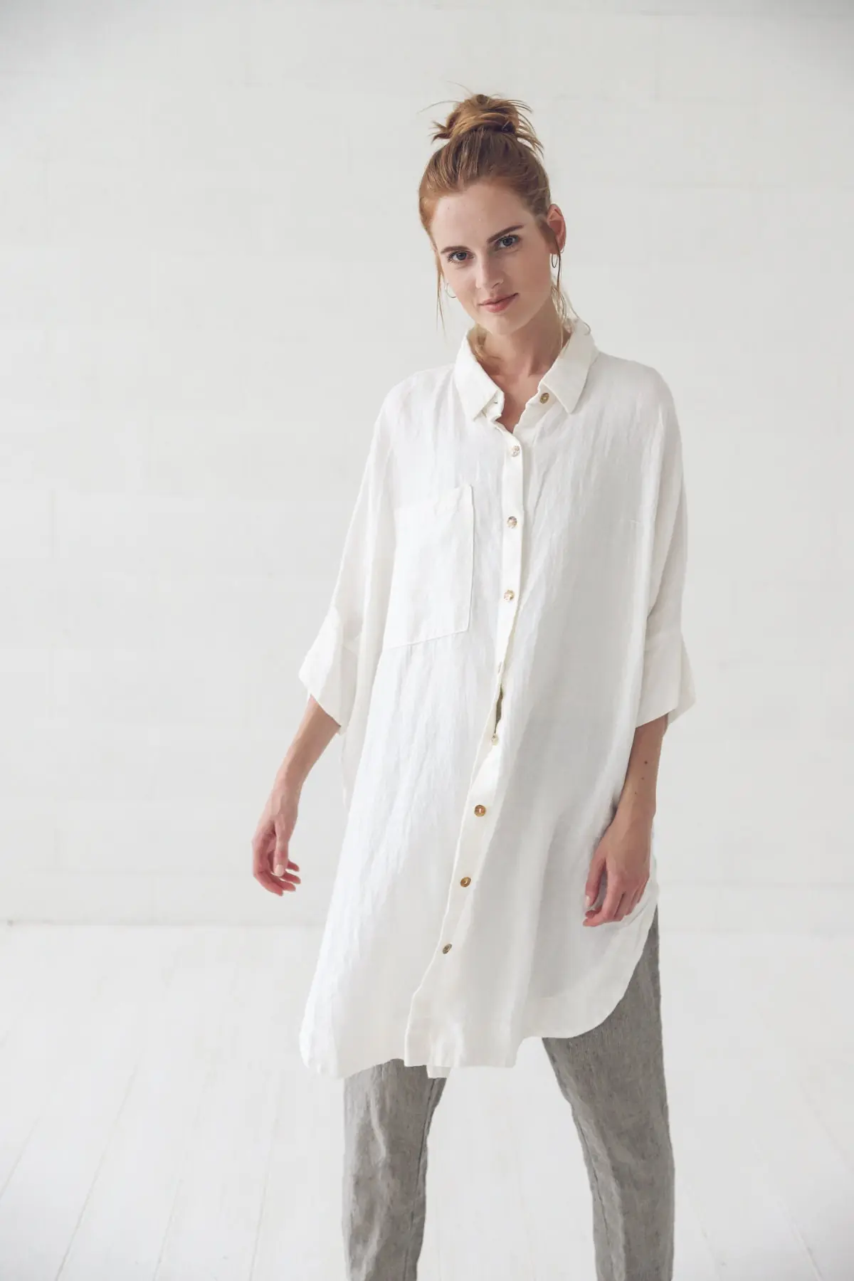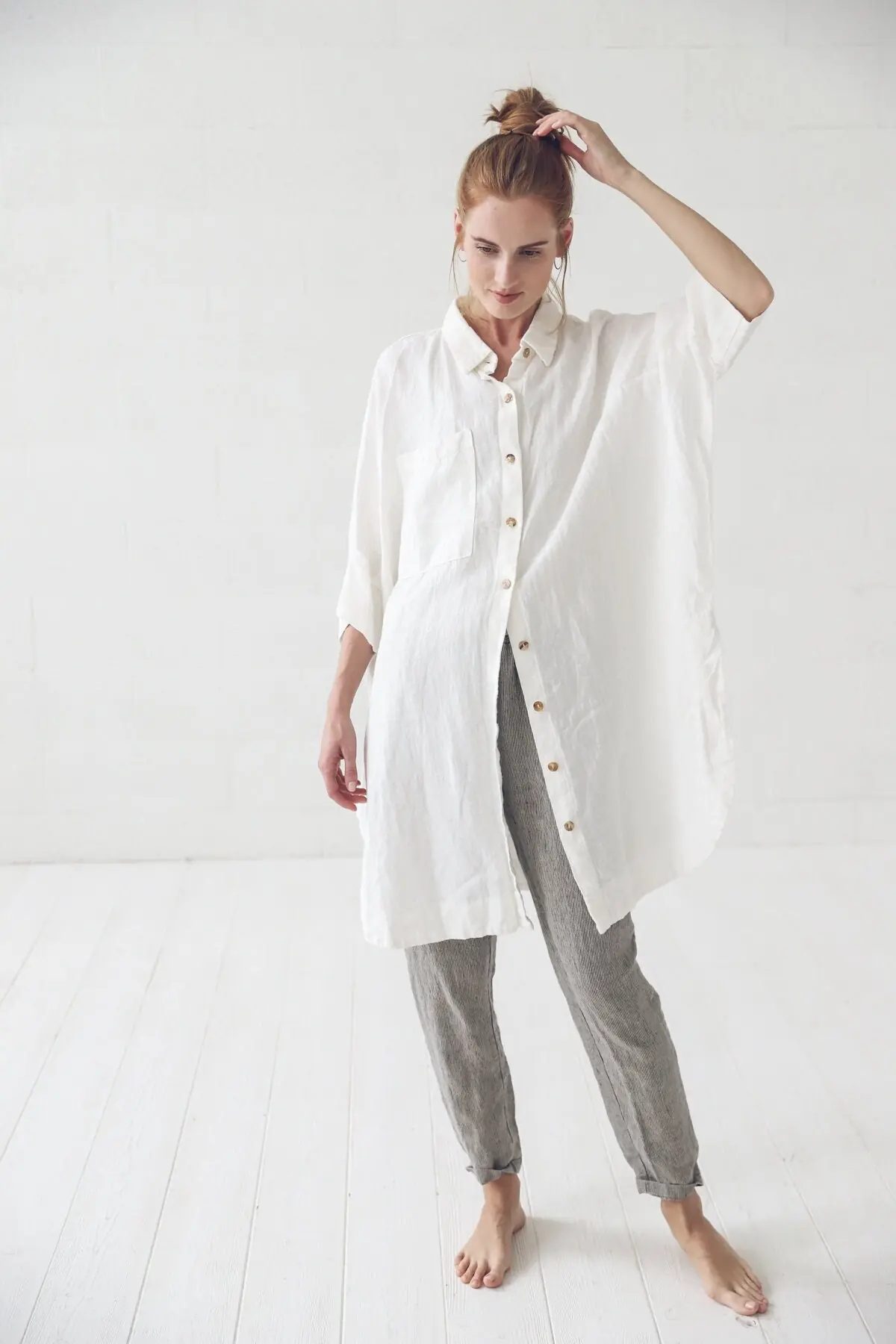 Oversized Linen Shirt: One Size Fits All, Soft European Linen